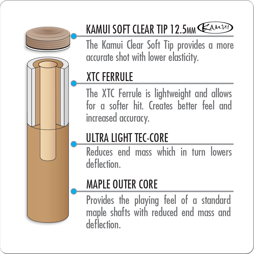 Shaft : 29" hard rock maple, 12" pro taper. 30mm light weight hybrid cored tenon.